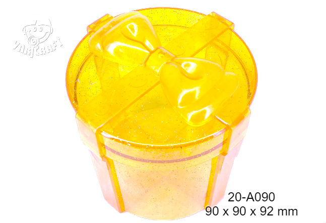 Round shape container with Ribbon Bow (H: 3.75 inch) - Glittery tinted